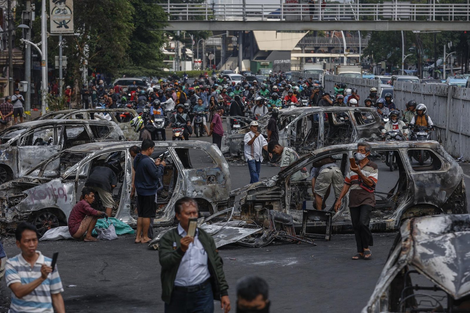 Na capital, Jacarta, manifestantes queimaram veículos próximos a um quartel da polícia e atacaram pelo menos cinco delegacias. Além disso, uma multidão invadiu a residência do deputado Ahmad Sahroni, no distrito de Tanjung Priok, destruindo o portão de entrada e saqueando o interior, incluindo roupas, sapatos e o cofre, segundo testemunhas locais.