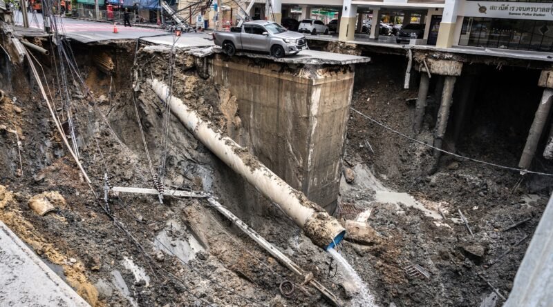 Cratera gigante se abre em avenida movimentada de Bangkok, na Tailândia
