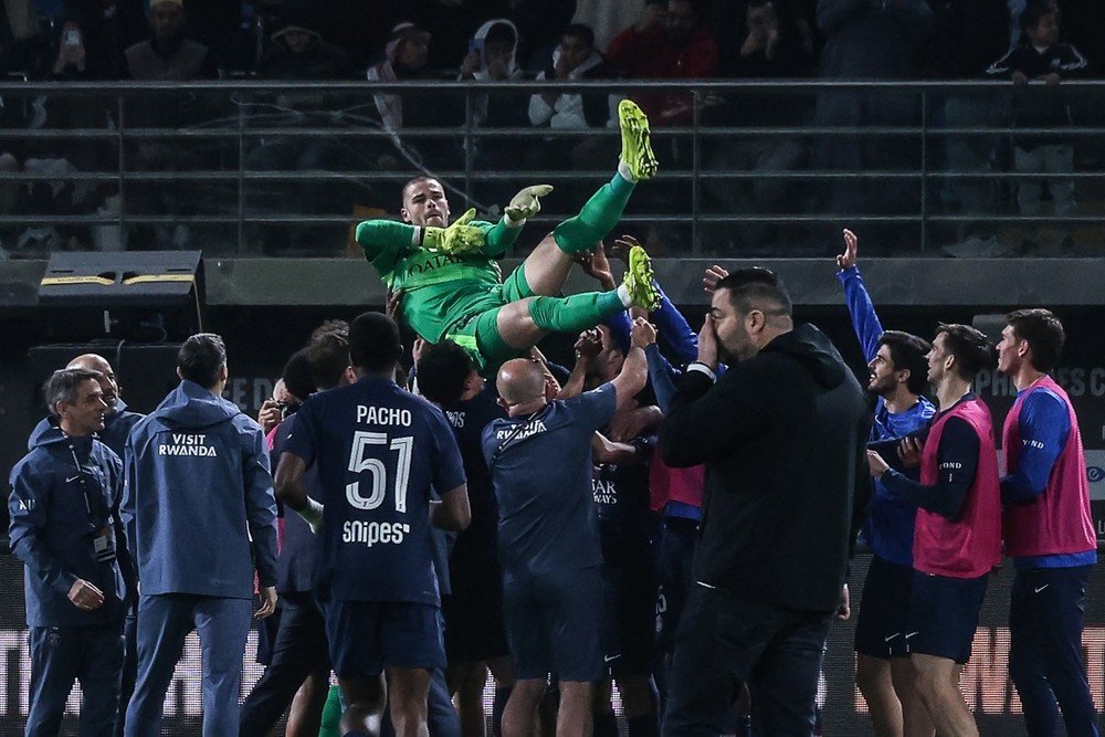 O atacante português também abriu a disputa de pênaltis, fazendo 1 a 0 para o PSG. A torcida parisiense vibrou também com a defesa de Chevalier na cobrança de O’Riley. Vitinha fez o segundo do PSG, vencendo Rulli, que acertou o canto mas não segurou. Traoré também parou em Chevalier, que espalmou no canto esquerdo. Nuno Mendes também bateu bem e fez 3 a 0, Murillo marcou para o Olympique, mas Doué garantiu o título.