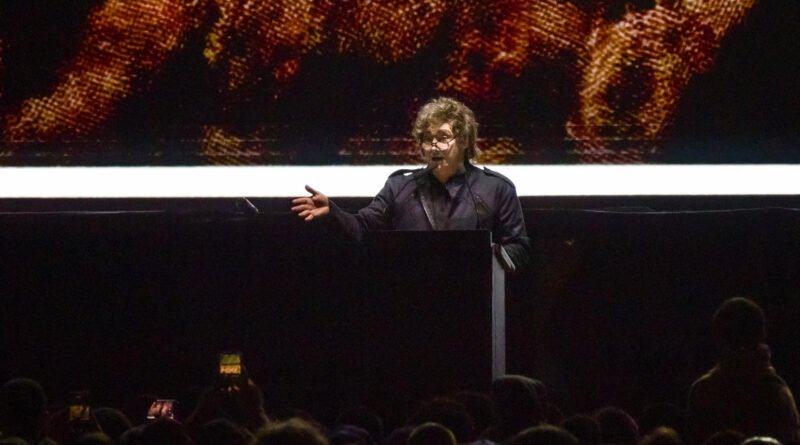Milei discursa em evento promovido pela direita na Argentina