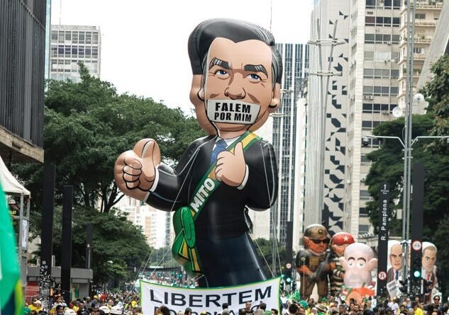 Ato revive tradição de bonecos infláveis com Bolsonaro censurado