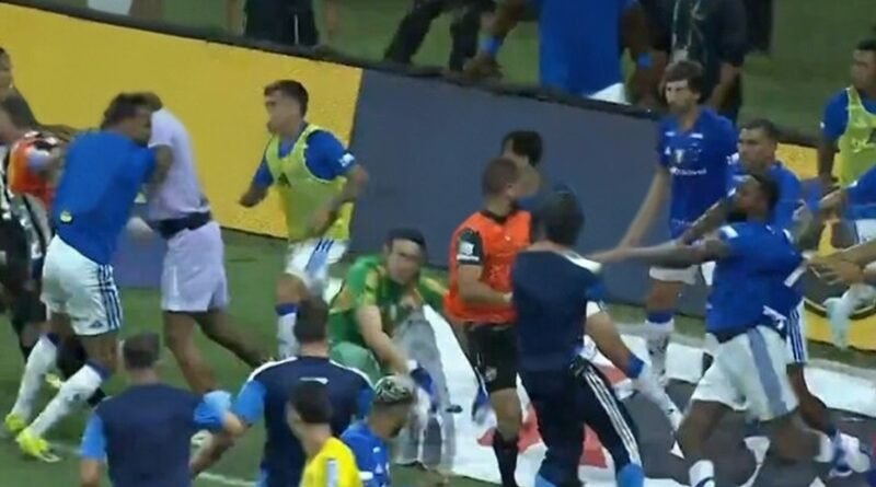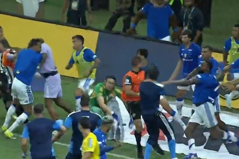 Na sequência, os jogadores atleticanos revidaram com empurrões e socos. Cássio tentou partir para cima do zagueiro Lyanco, mas foi contido. O defensor atleticano, logo depois, trocou socos com o meia Gérson em campo e levou um chute do goleiro cruzeirense.