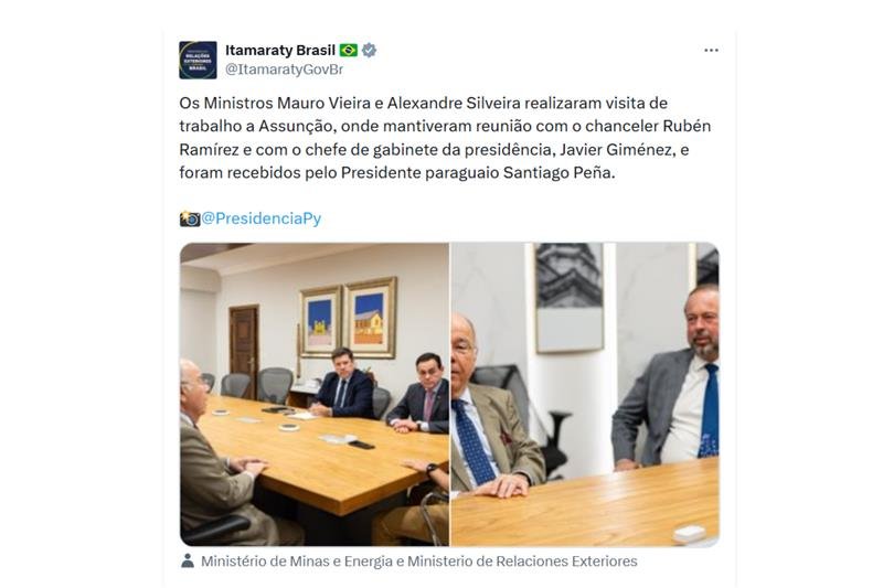 Sem dar mais detalhes, o ministro paraguaio informou que discutiu o assunto com seu homólogo brasileiro, Mauro Vieira, e que todos os aspectos do acordo “foram esclarecidos para todos”.