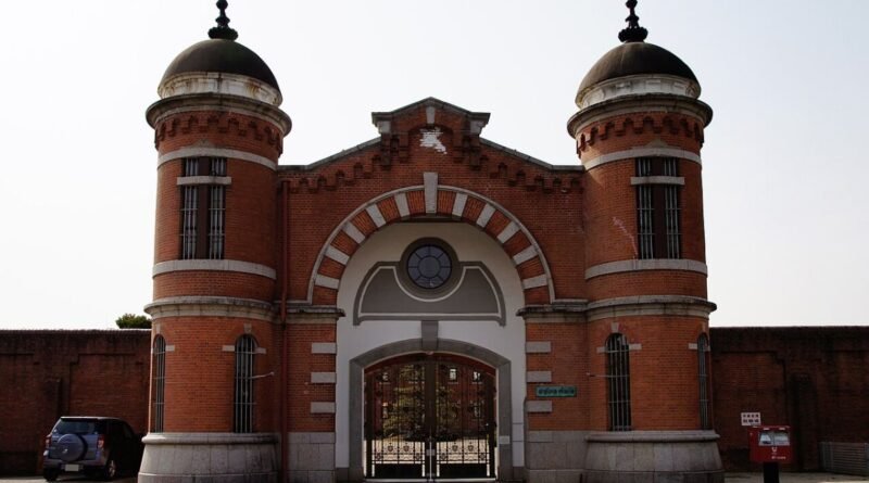 Construída no início do século XX, a prisão foi inaugurada em 1908 e é considerada um exemplo da arquitetura penitenciária do período Meiji. O prédio principal, em tijolos vermelhos, segue o modelo radial, com alas que se conectam a partir de um ponto central – um formato pensado para facilitar a vigilância.